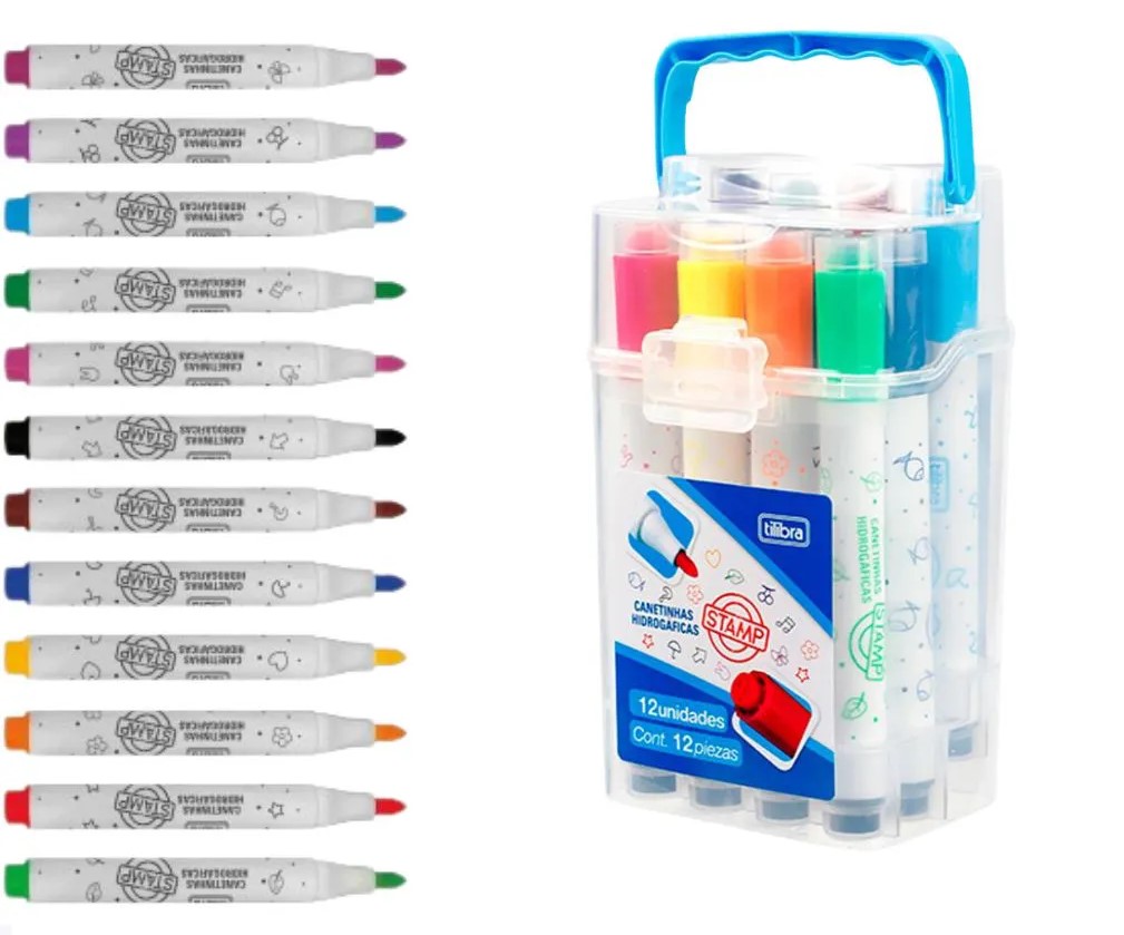 CANETINHAS HIDROGRÁFICAS COM CARIMBO STAMP TILIBRA C/ 12 CORES