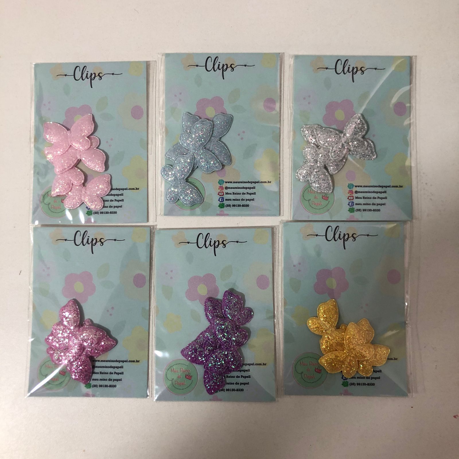KIT C/4 APLIQUES BORBOLETAS COM GLITTER COLORIDA