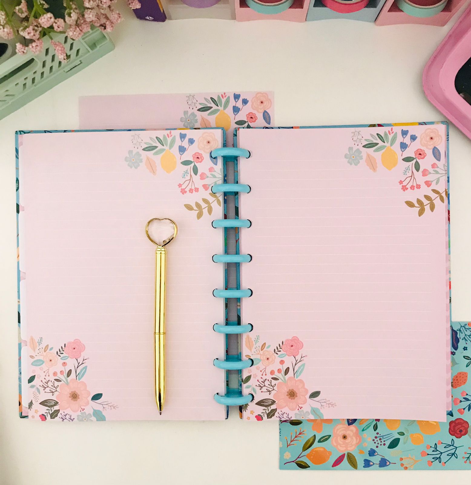 CADERNO DE DISCO UNIVERSITÁRIO - FLORAL TURQUESA*