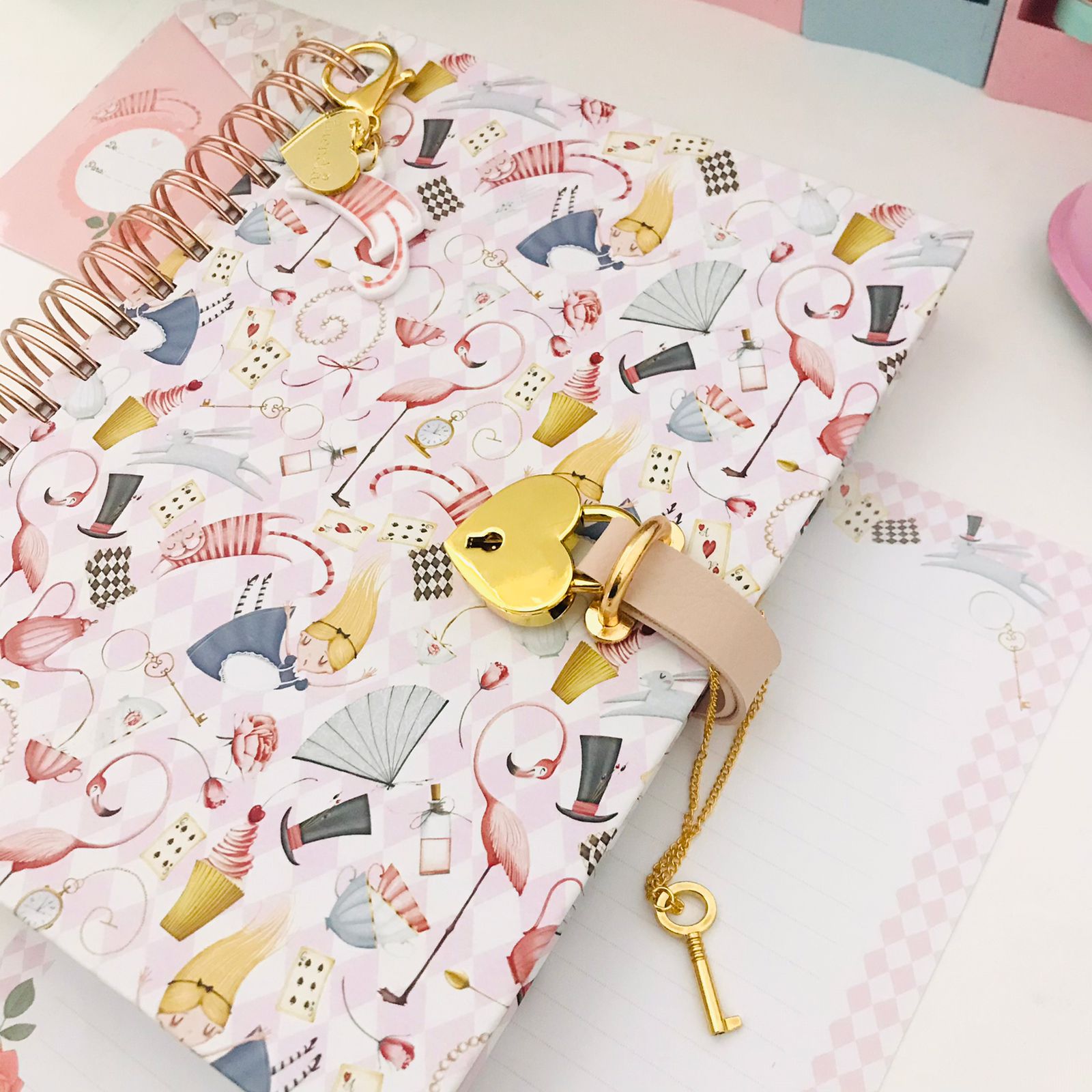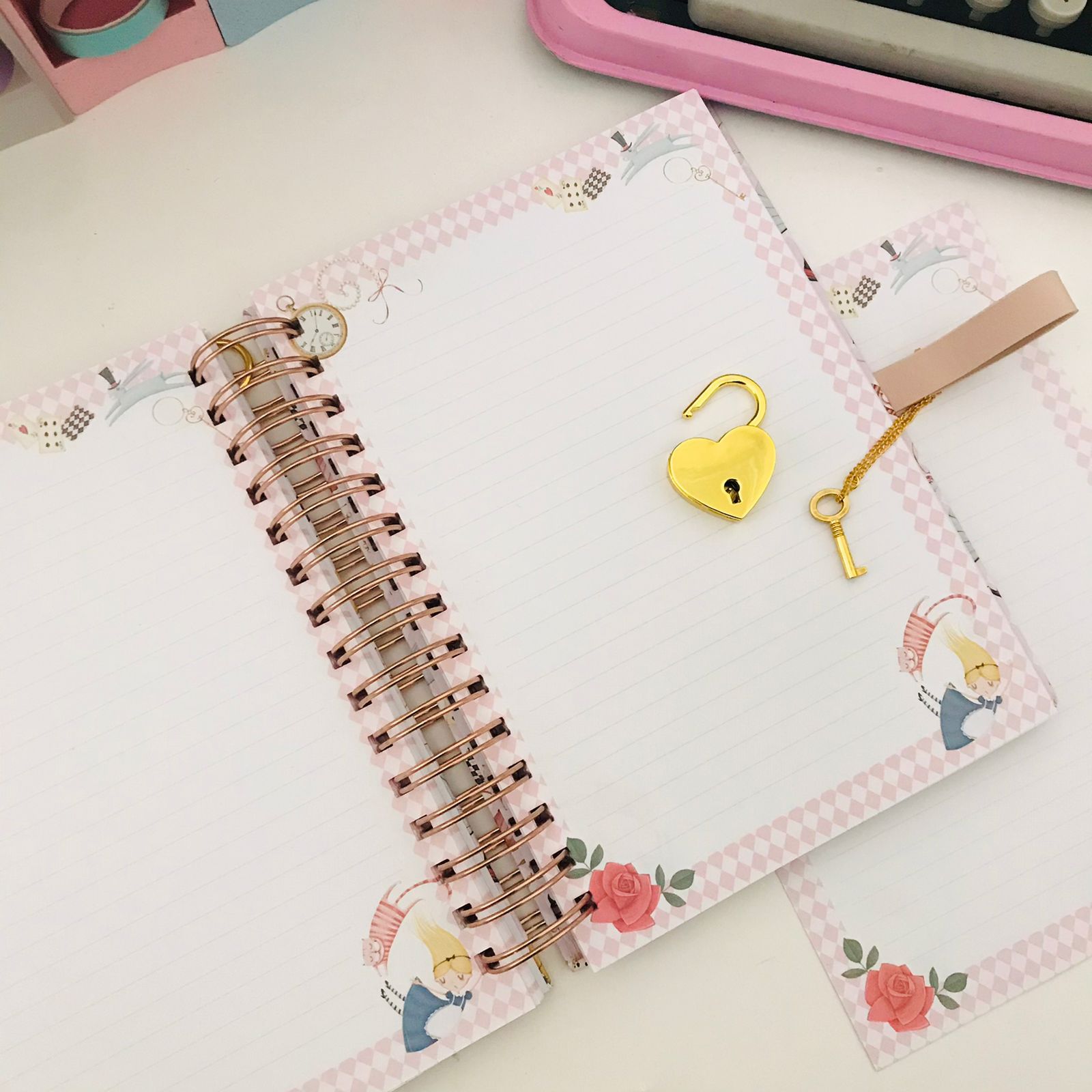 DIÁRIO COM CADEADO DOURADO SUPER LUXUOSO EM FORMATO DE CORAÇÃO COM CHAVE