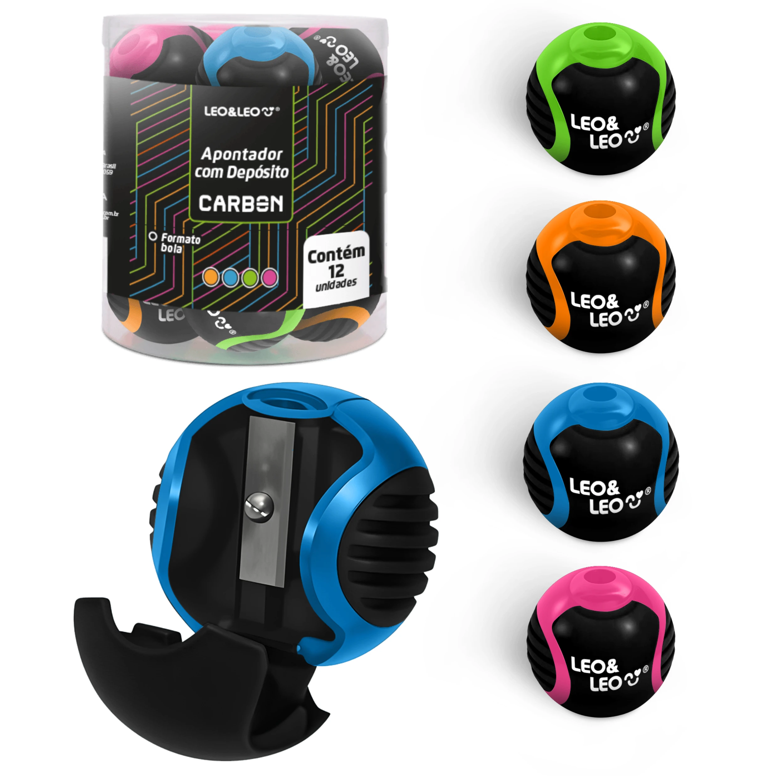 O APONTADOR BOLA COM DEPÓSITO CARBON LINE - POTE COM 12 UNIDADES LEO&LEO VAI DEIXAR A HORA DE ESTUDAR E CRIAR AINDA MAIS REDONDINHA.