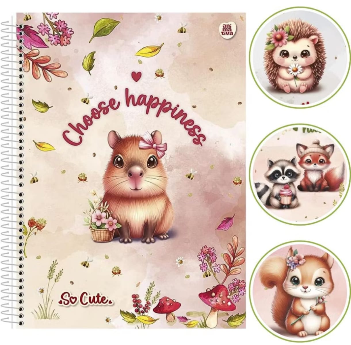 CADERNO UNIVERSITÁRIO 1M SO CUTE ANIMAIS
