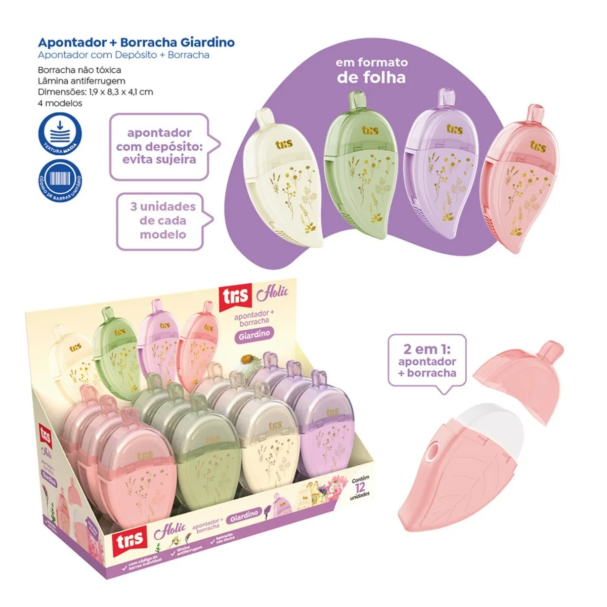 EM FORMATO DE FOLHA COM 4 CORES DISPONIVÉIS