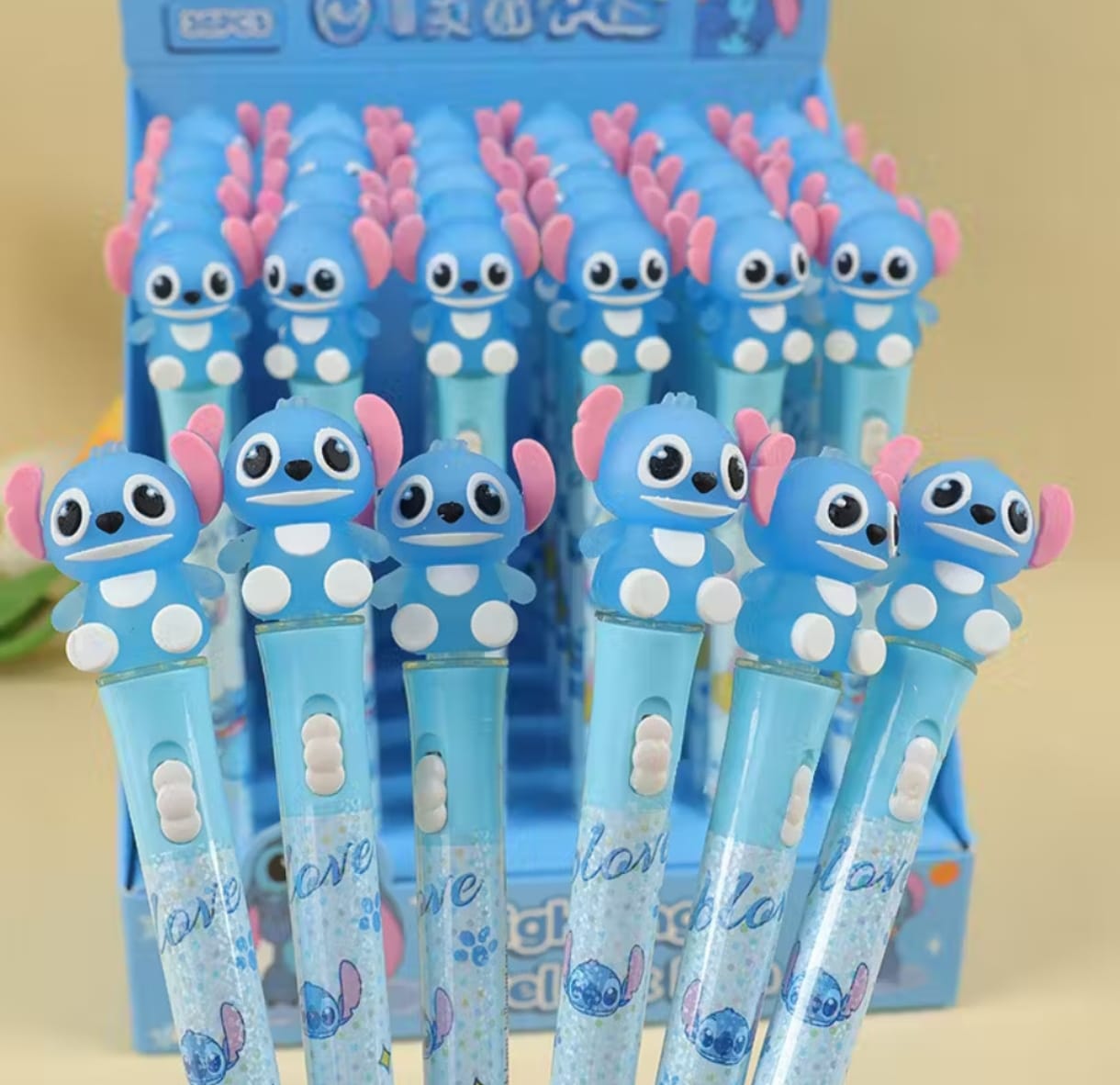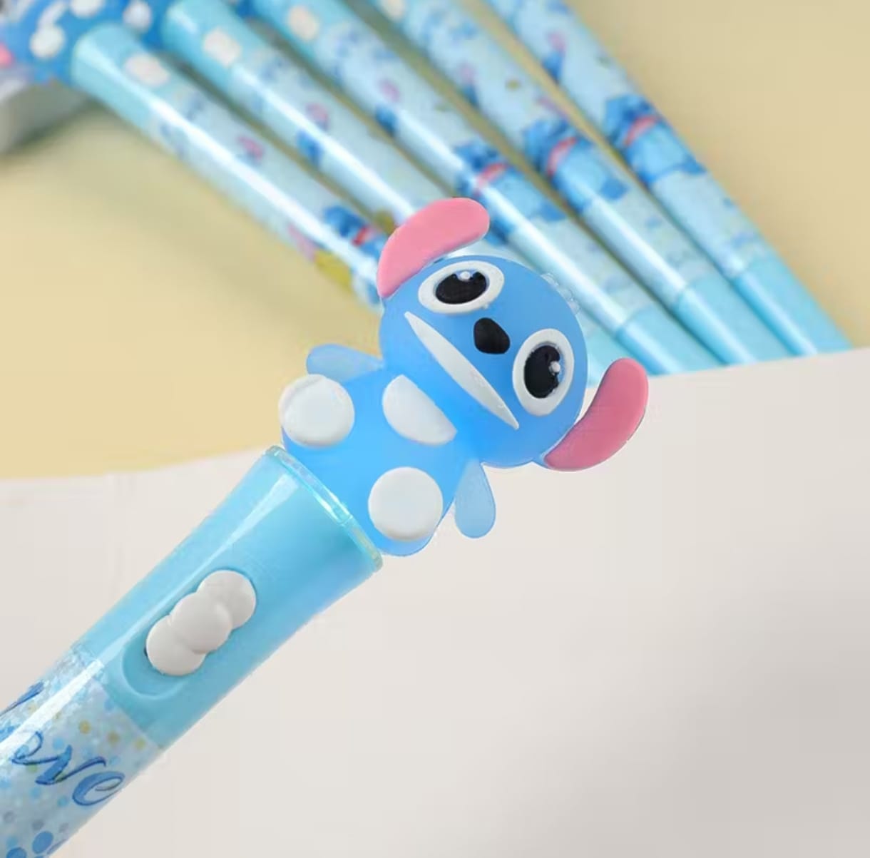 CANETA DE GEL COM LUZ STITCH*