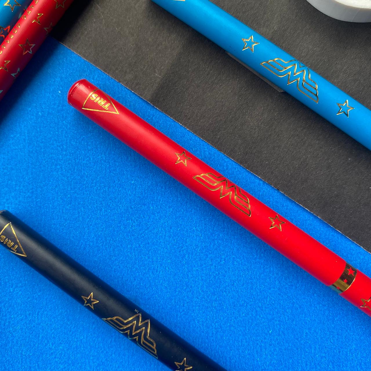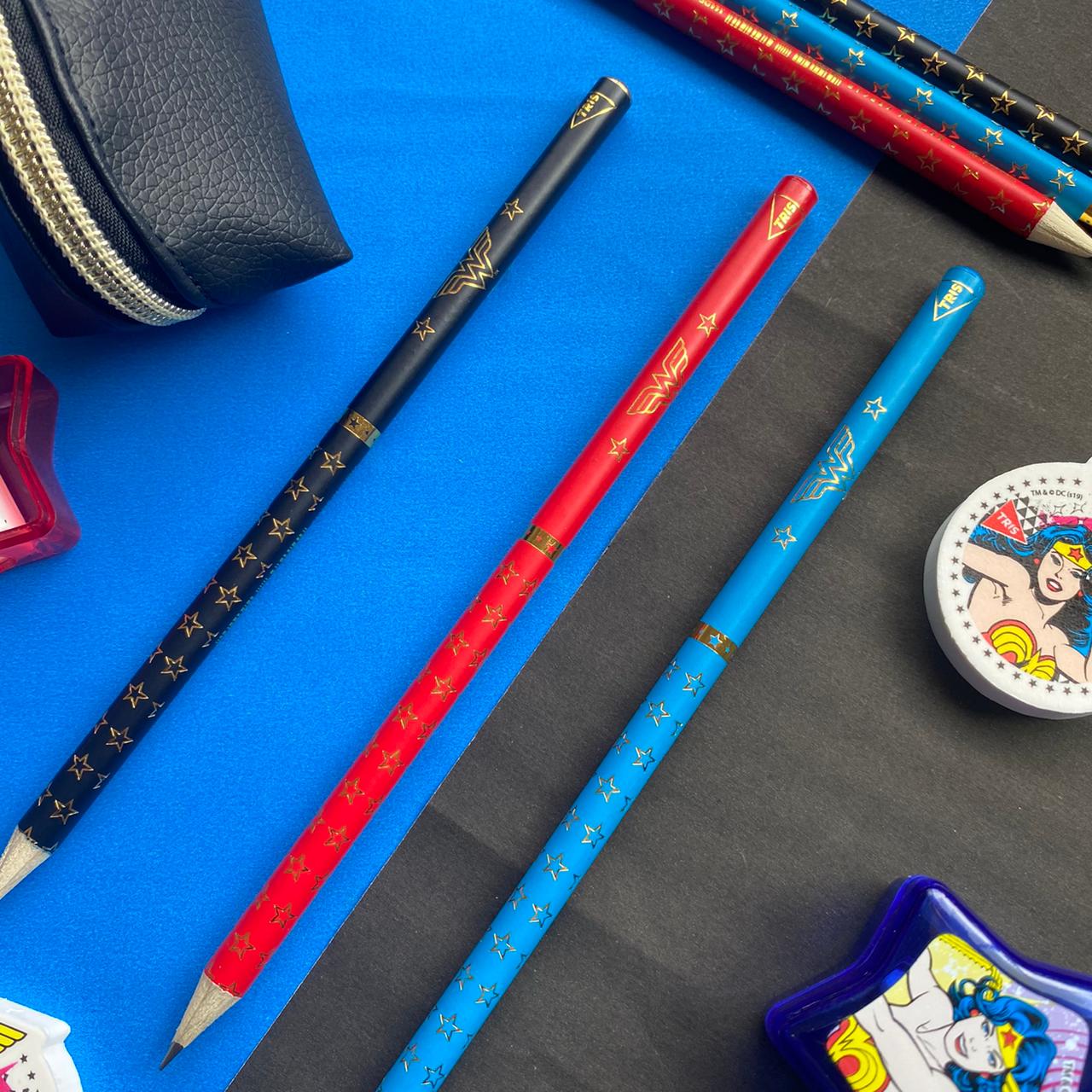 LÁPIS PRETO DA MULHER MARAVILHA COM DETALHES EM DOURADO