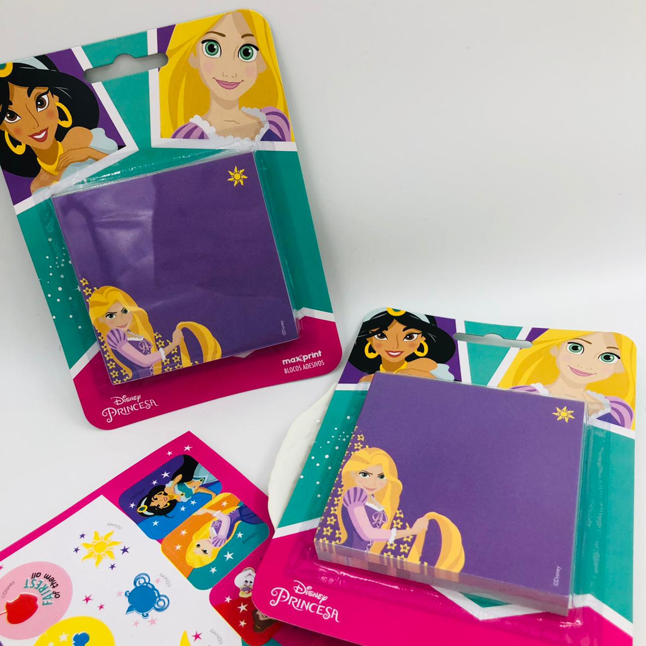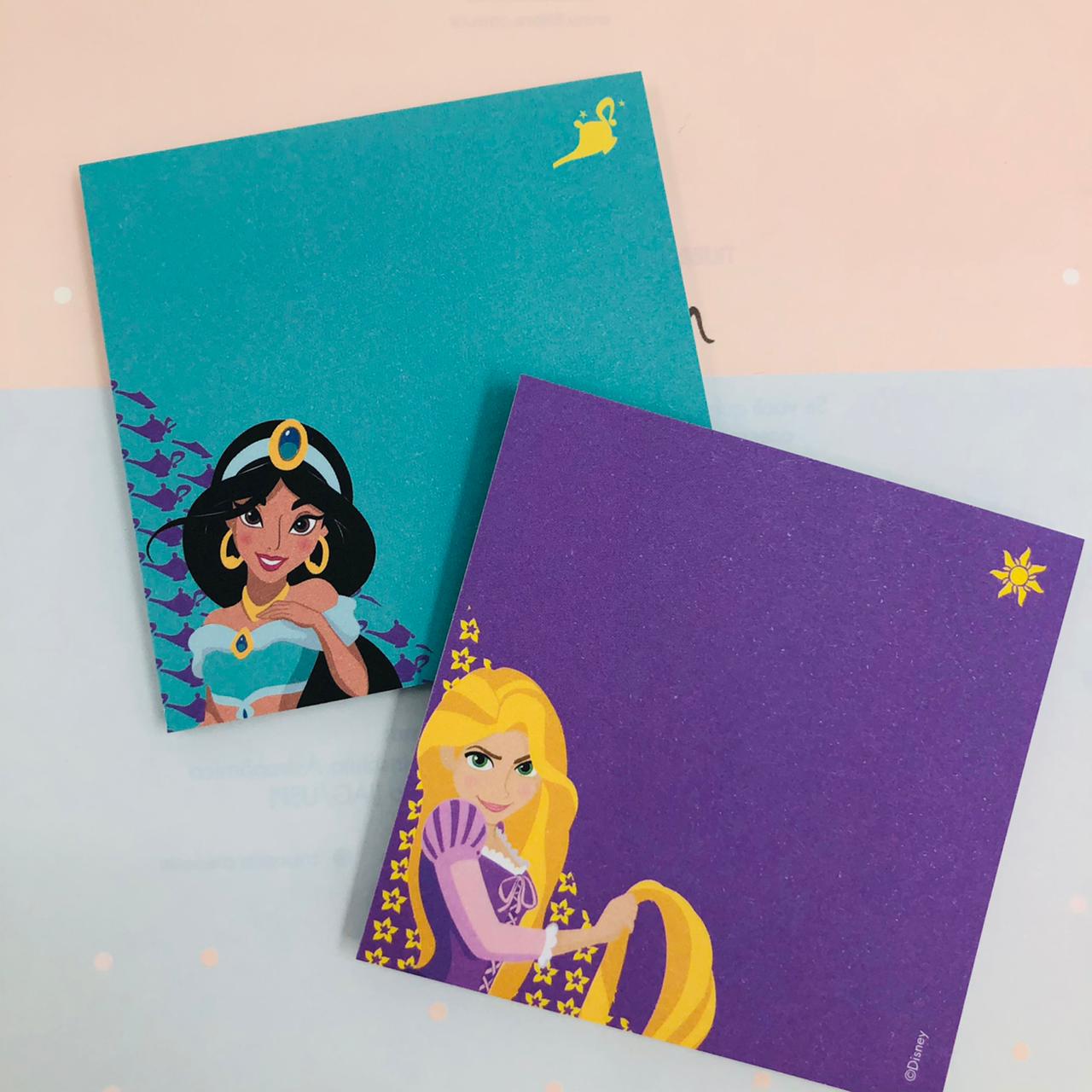 KIT DE BLOCO ADESIVO PRINCESAS JASMINE E RAPUNZEL PARA LEMBRETES E RECADOS