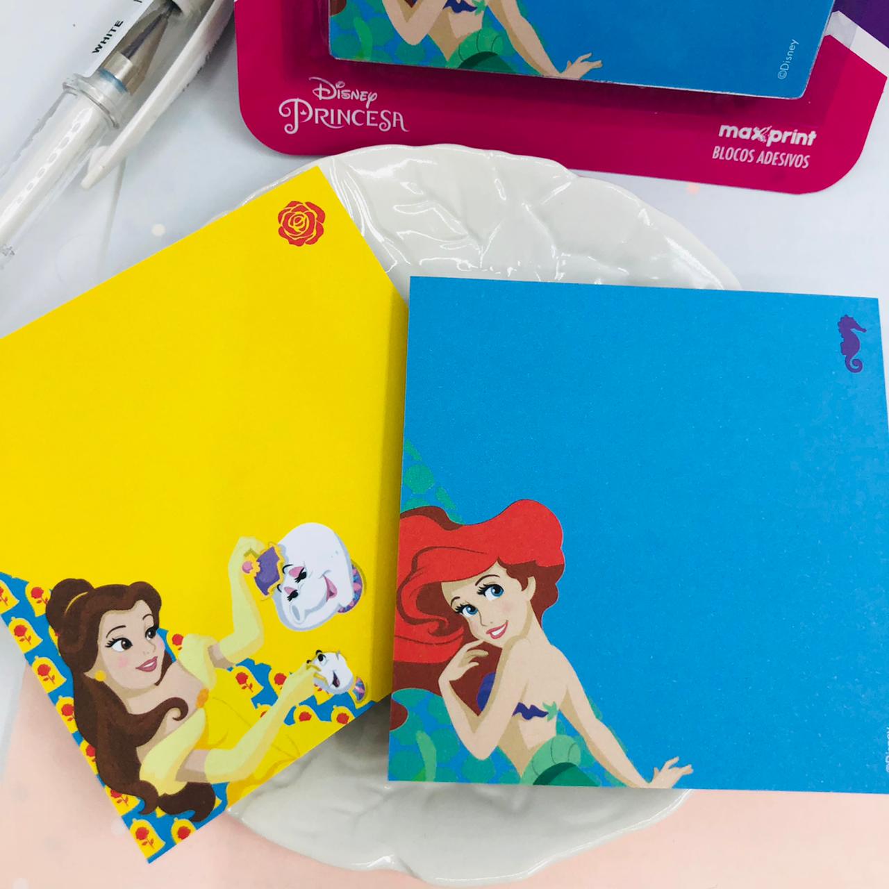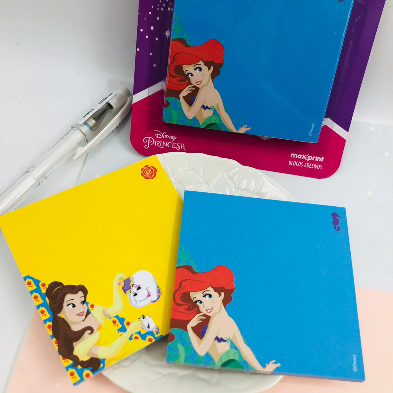 KIT DE BLOCO ADESIVO PRINCESAS BELA E ARIEL PARA LEMBRETES E RECADOS
