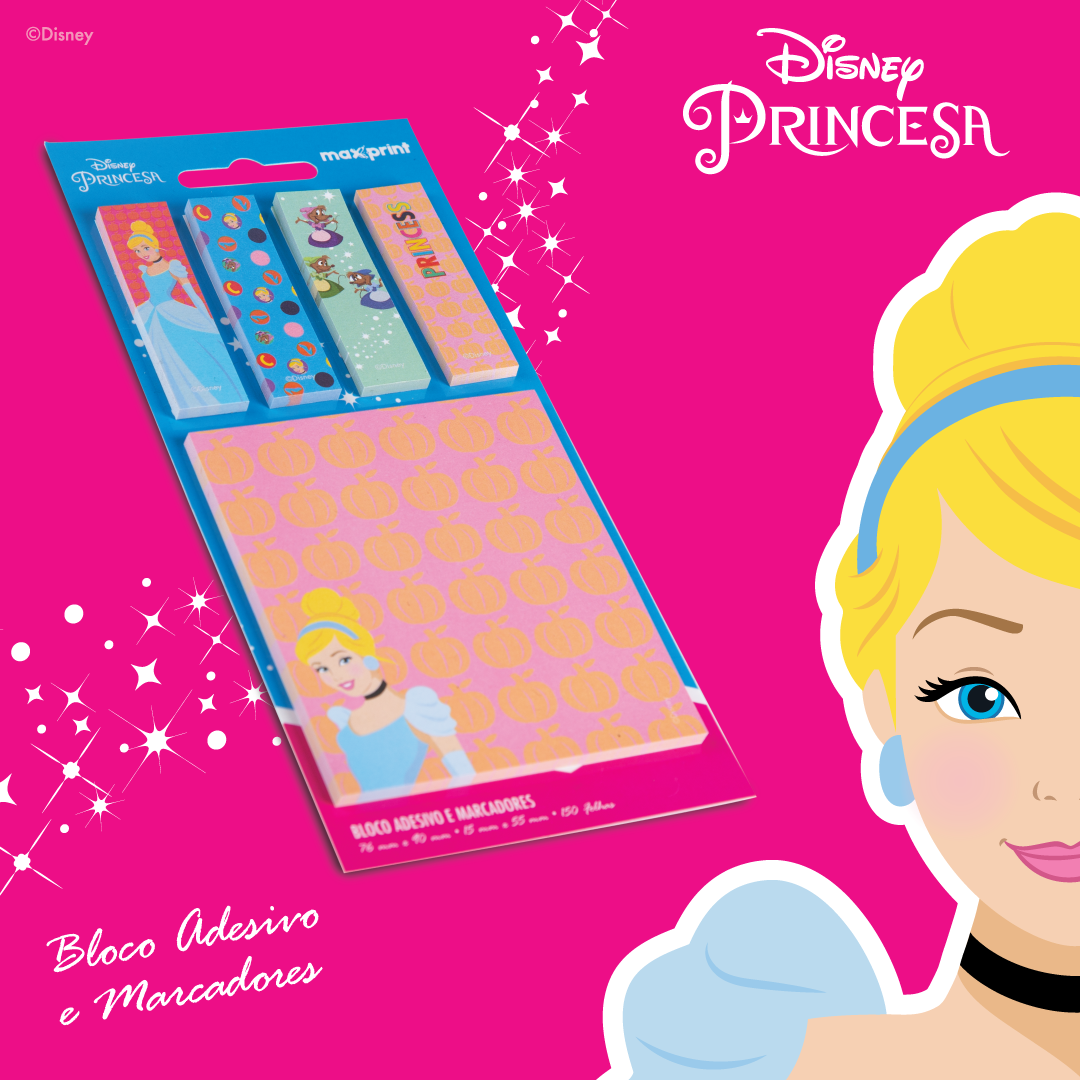 KIT DE BLOCO ADESIVOS E 4 MARCADORES CINDERELA