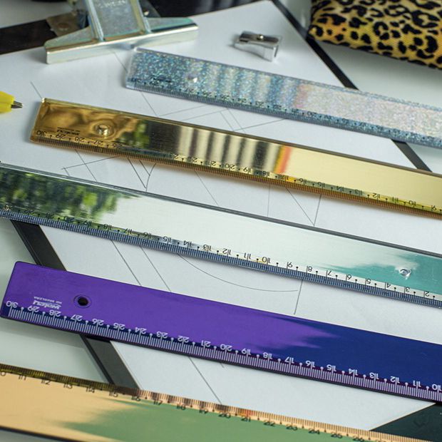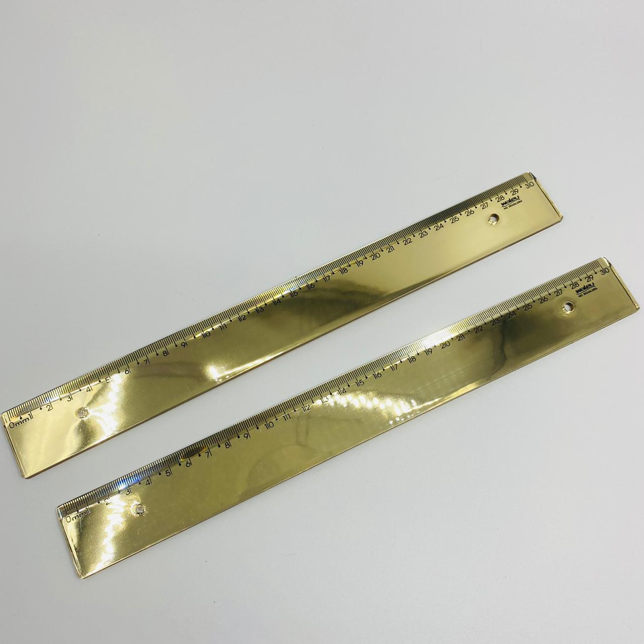 RÉGUA METALIZADA NA COR DOURADA, PRATA E ROXA