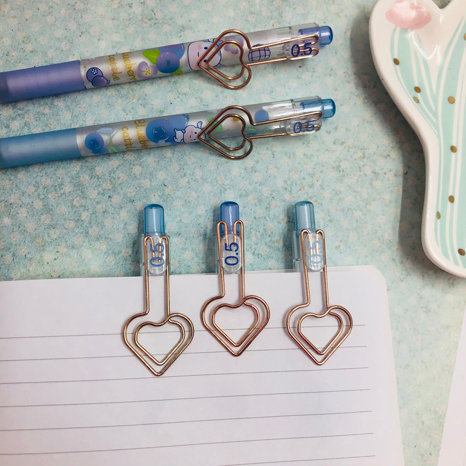 COM CLIPS ROSE GOLD EM FORMATO CORAÇÃO