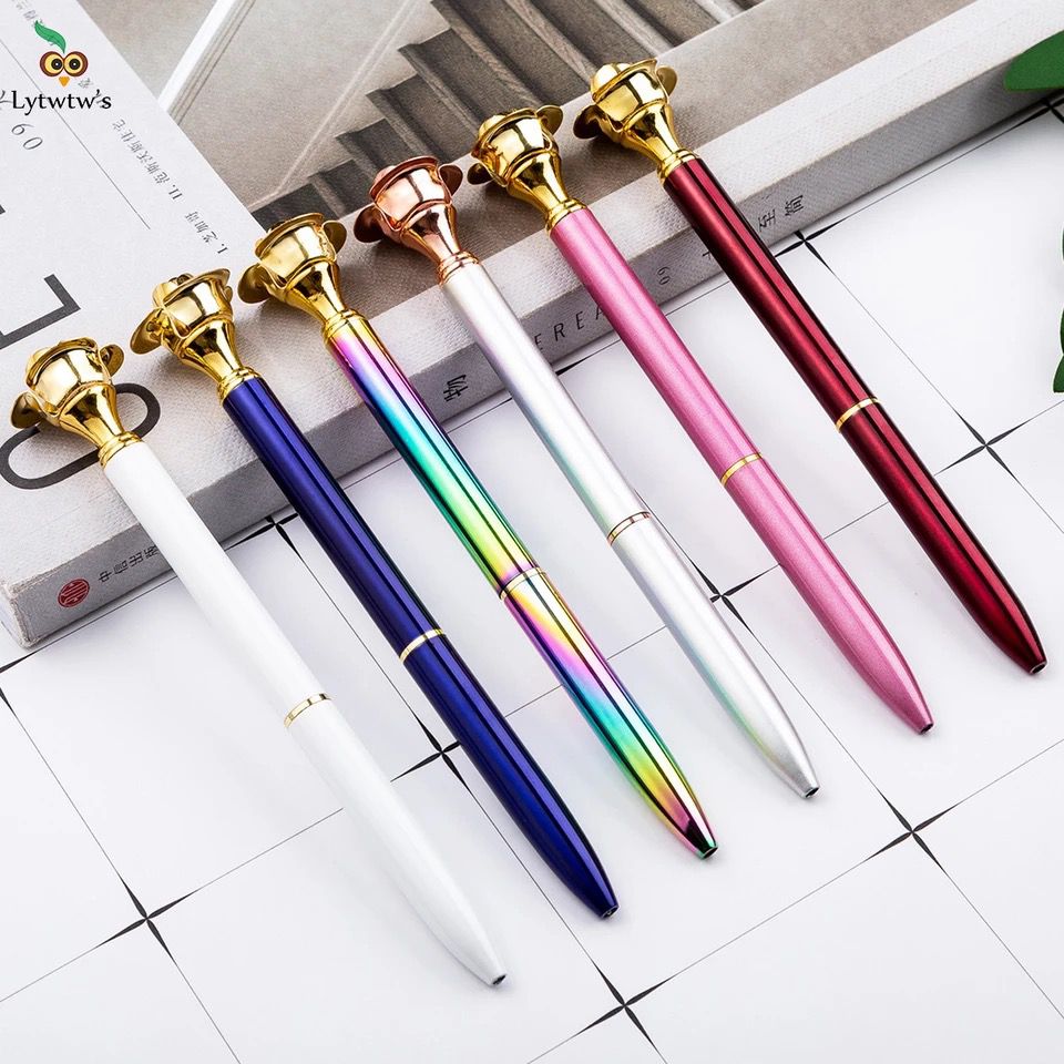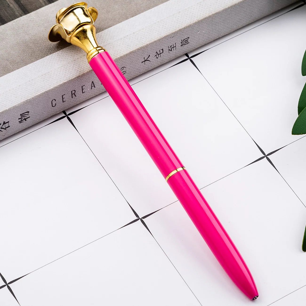 CANETA ESFEROGRÁFICA COM DETALHE DE ROSAS NA PONTA